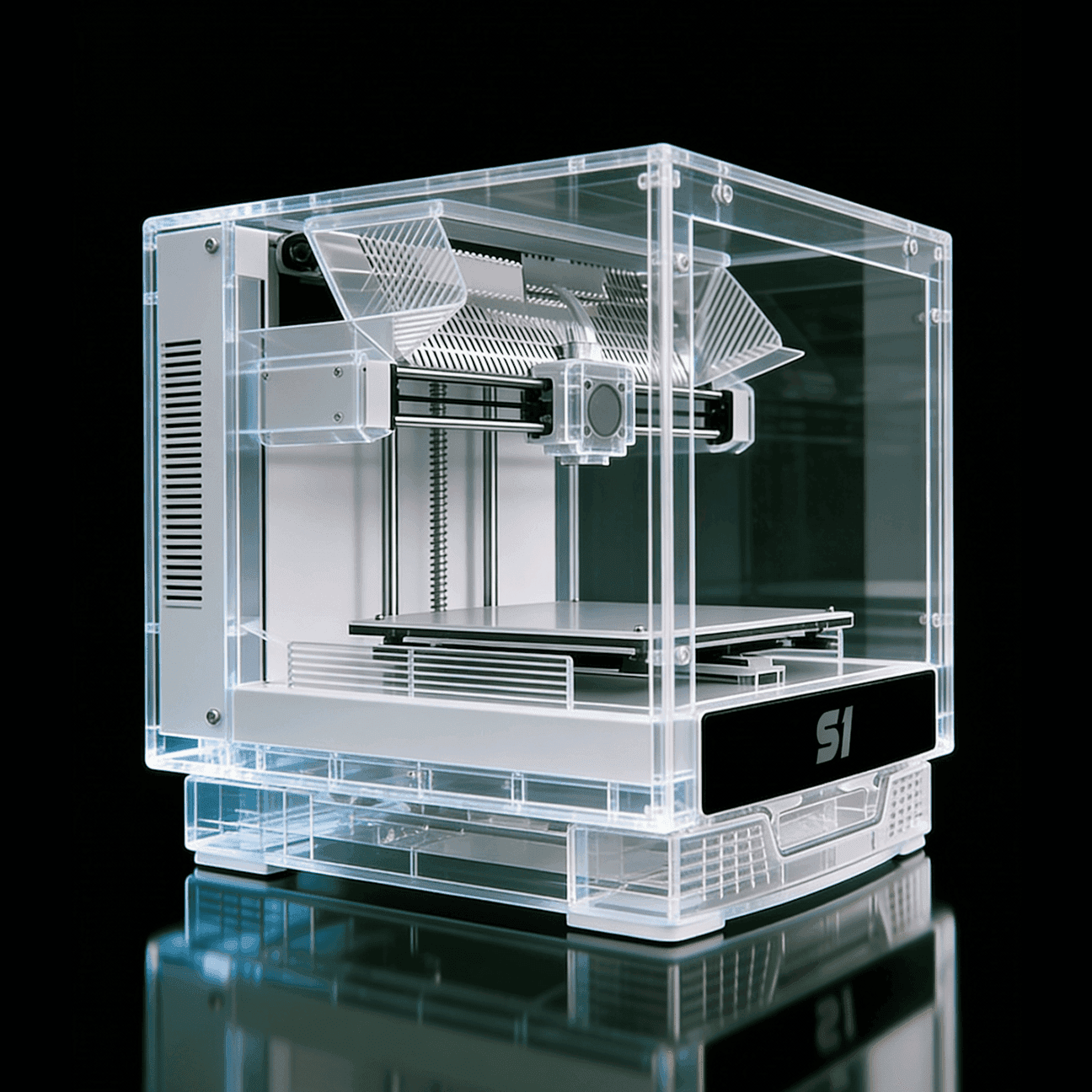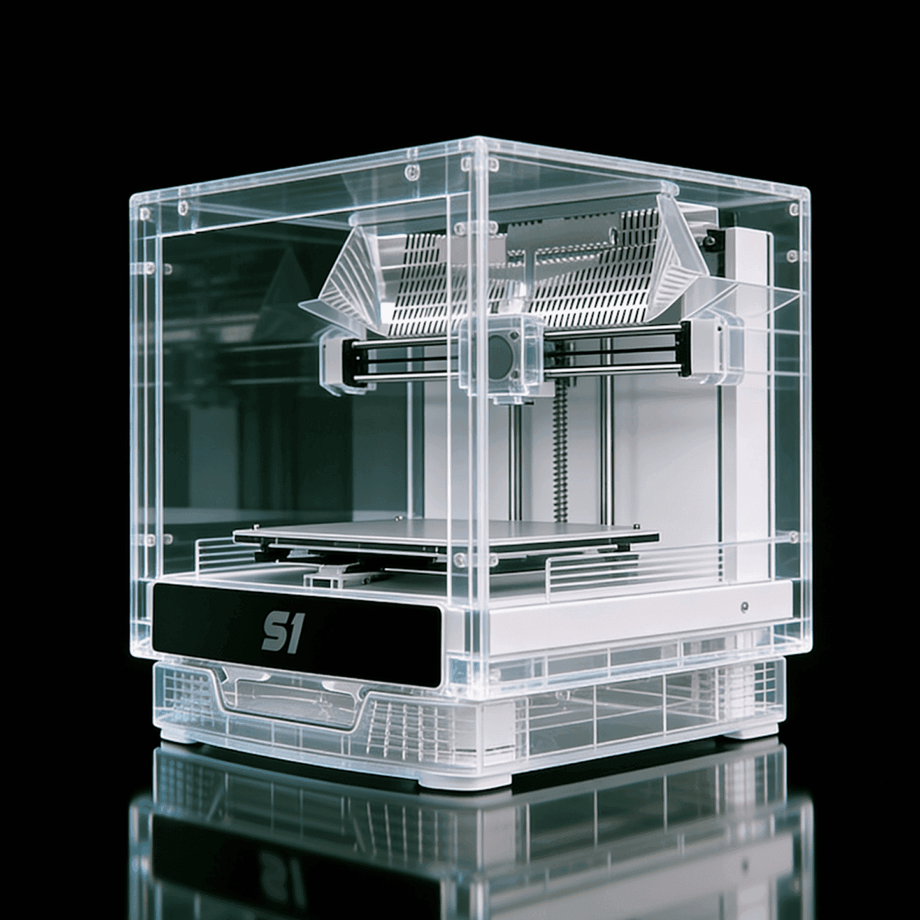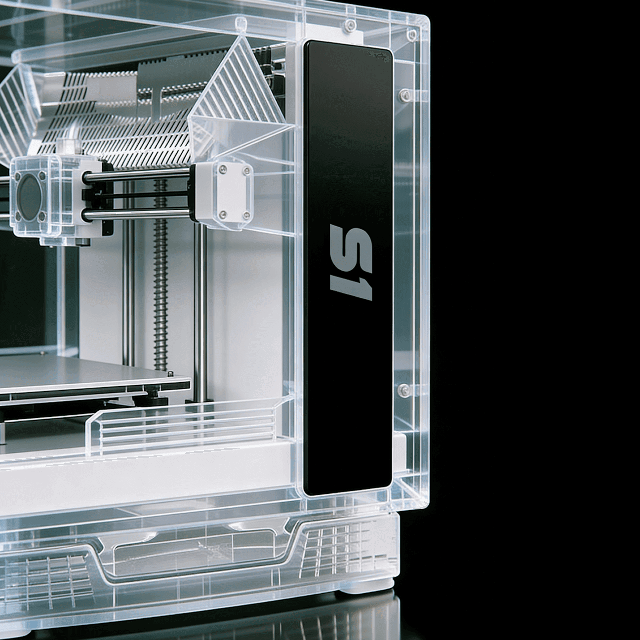 The S1 GLASS FRAME SPRINT is a fast, user-friendly 3D printer, reaching speeds of 300 mm/s without sacrificing quality.